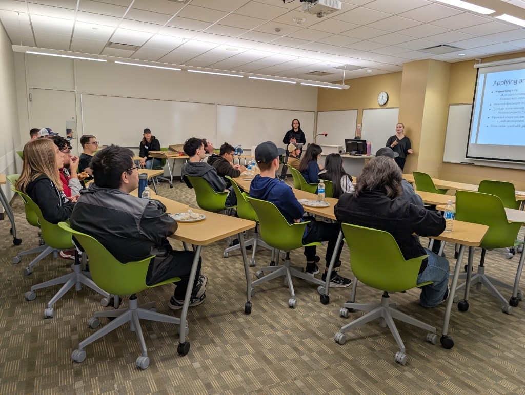 One standout moment was our keynote speaker, an alumna from the College of DuPage (COD) who is now a senior at Lewis University. Despite her busy schedule, she generously shared her wealth of experience gained through internships and her current job. Her talk resonated with the participants as she covered essential topics like approaching technical projects, navigating LeetCode challenges, preparing resumes, excelling in interviews, and building a professional network. Her relatable journey and actionable advice offered inspiration and practical tools for everyone attending, especially those just starting their careers in tech.